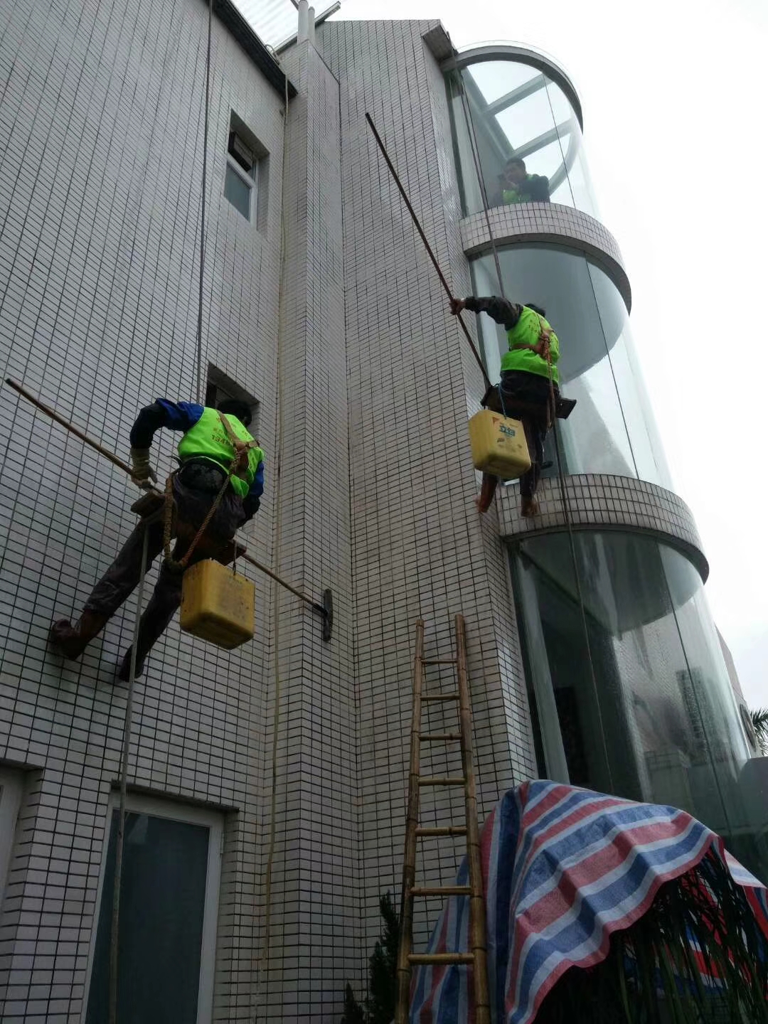 外墻清洗是高空清洗的一種,是一種萬(wàn)分危險(xiǎn)的清洗保潔項(xiàng)目,外墻清洗不僅要做到清洗物的干凈整潔,更重要的是要確??涨逑词┕と藛T的安全。這就請(qǐng)求保潔公司的施工人員有著萬(wàn)分豐厚的高空清洗實(shí)踐操作經(jīng)歷,并有良好的管理團(tuán)隊(duì)和過(guò)硬的安全保護(hù)措施。本公司從這些方面入手首先處理了施工工具的安全性,采用雙保險(xiǎn)的跳板清洗方式,由專人負(fù)責(zé)現(xiàn)場(chǎng)施工,責(zé)任到人,嚴(yán)厲執(zhí)行施工安全請(qǐng)求,在上百次的外墻清洗施工中無(wú)任何事端。